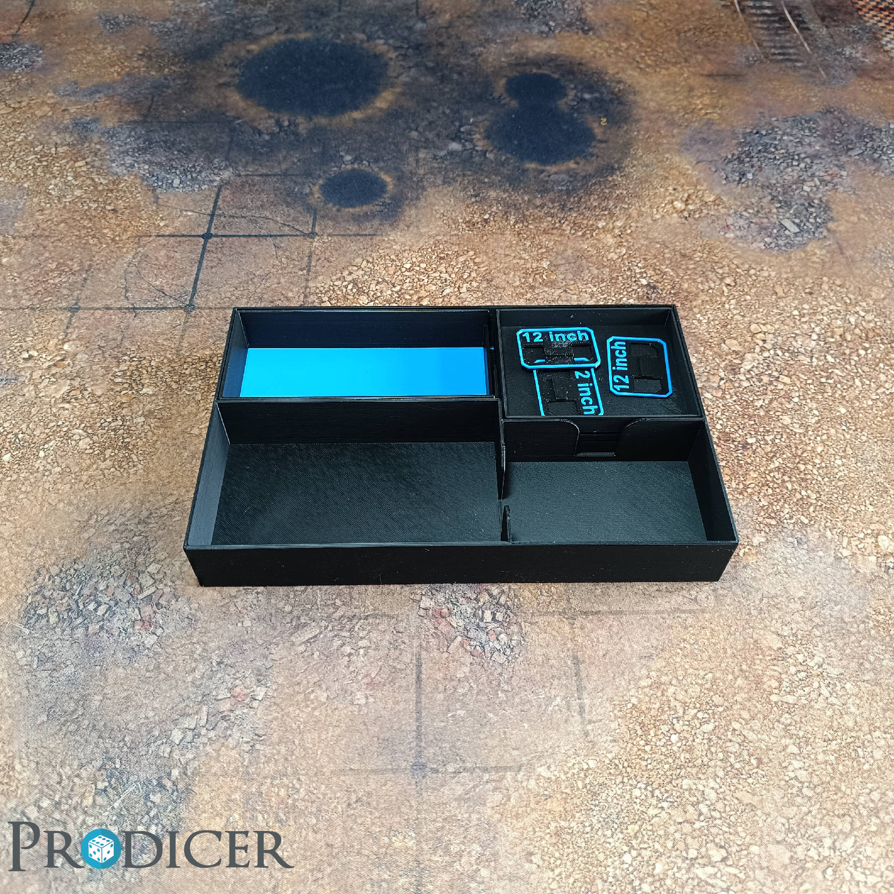 Alle ProBox XL Organizer sind so dimensioniert und designed, dass die 9 Zoll Deployment Zone Markers dort ebenfalls Platz finden, jedoch muss in der AOS Variante die kleine schwarze Box entfernt werden.