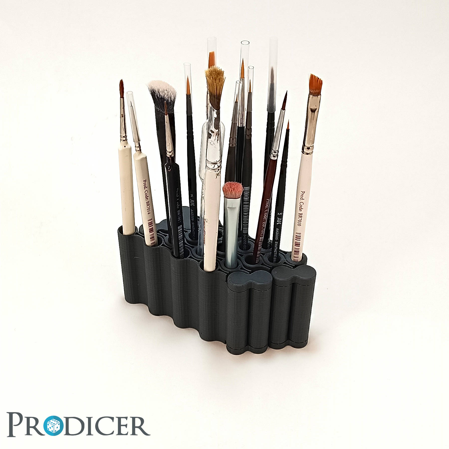 Dies ist ein praktischer Pinselhalter für bis zu 17 Pinsel und sorgt für Ordnung auf deinem Maltisch. Dank seiner Scharnierfunktion lässt er sich zum Arbeiten einfach aufklappen, sodass alle Pinsel griffbereit sind. Nach dem Malen kannst du den Halter platzsparend zusammenklappen und alles Pinsel schnell verstauen. Ideal für Tabletop- und Miniaturenmaler, die Wert auf Übersicht und Organisation legen.